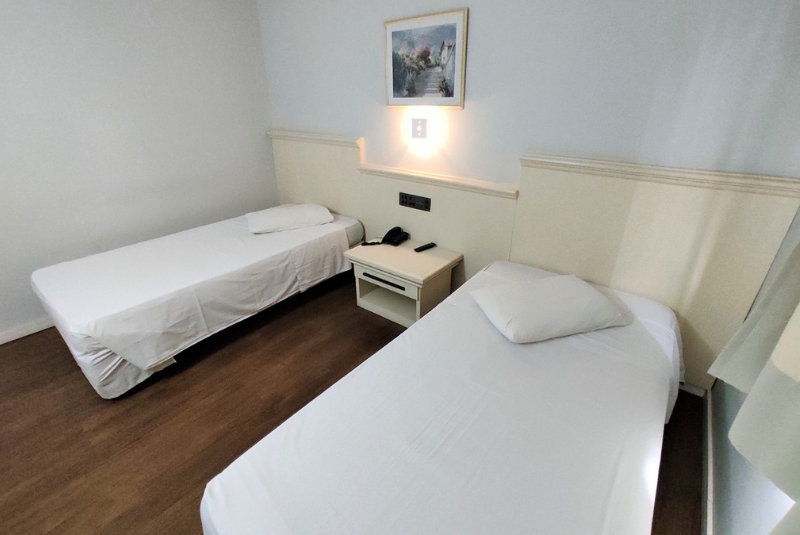 Oferece duas camas de solteiro, ar-condicionado, frigobar não abastecido, TV com sinal aberto, secador de cabelo e Wi-Fi gratuito.